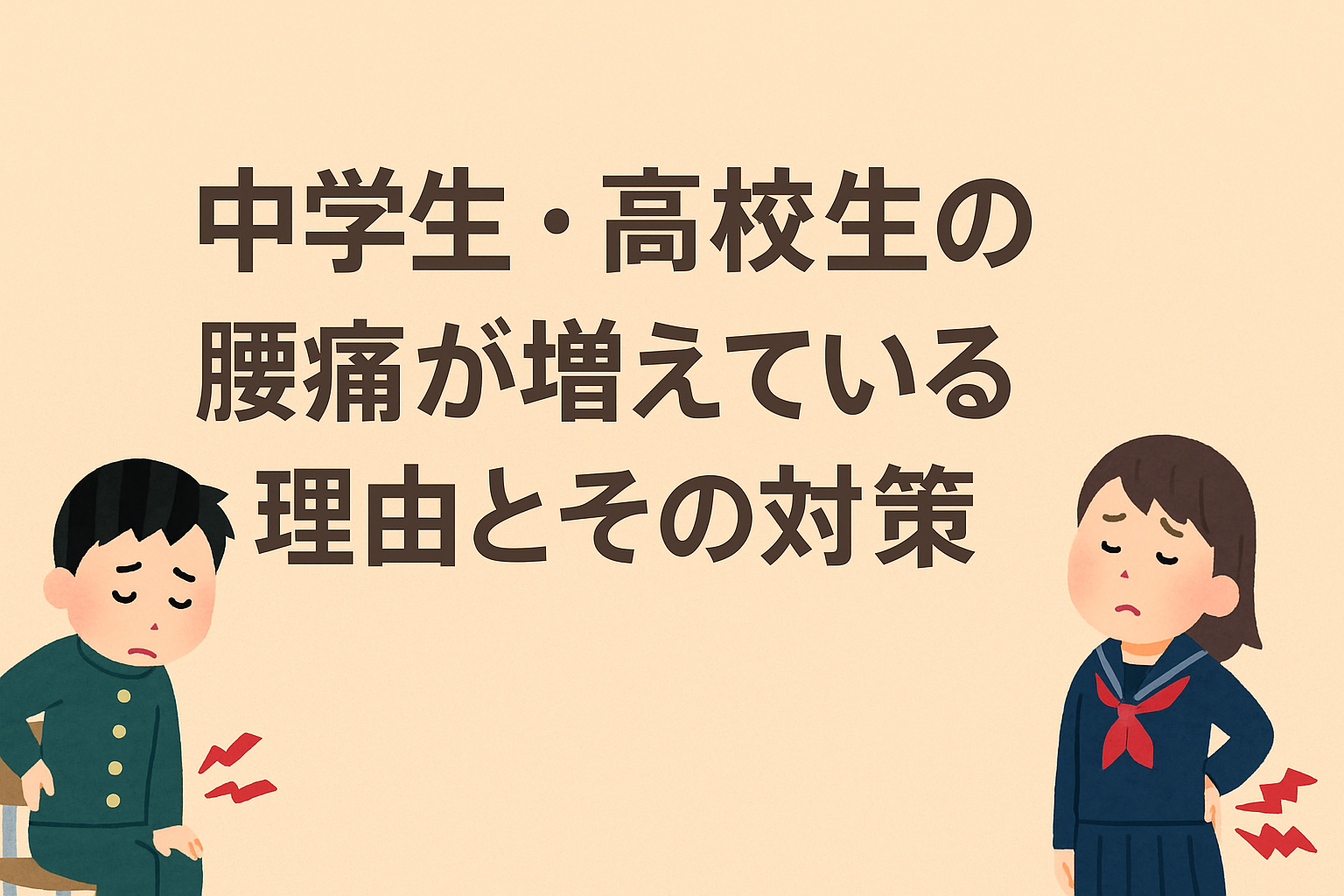 最近、中学生や高校生でも腰痛に悩むケースが増えています。部活動や勉強、スマホ・ゲームによる姿勢の悪化、成長期の身体の変化など、腰痛の原因はさまざまです。